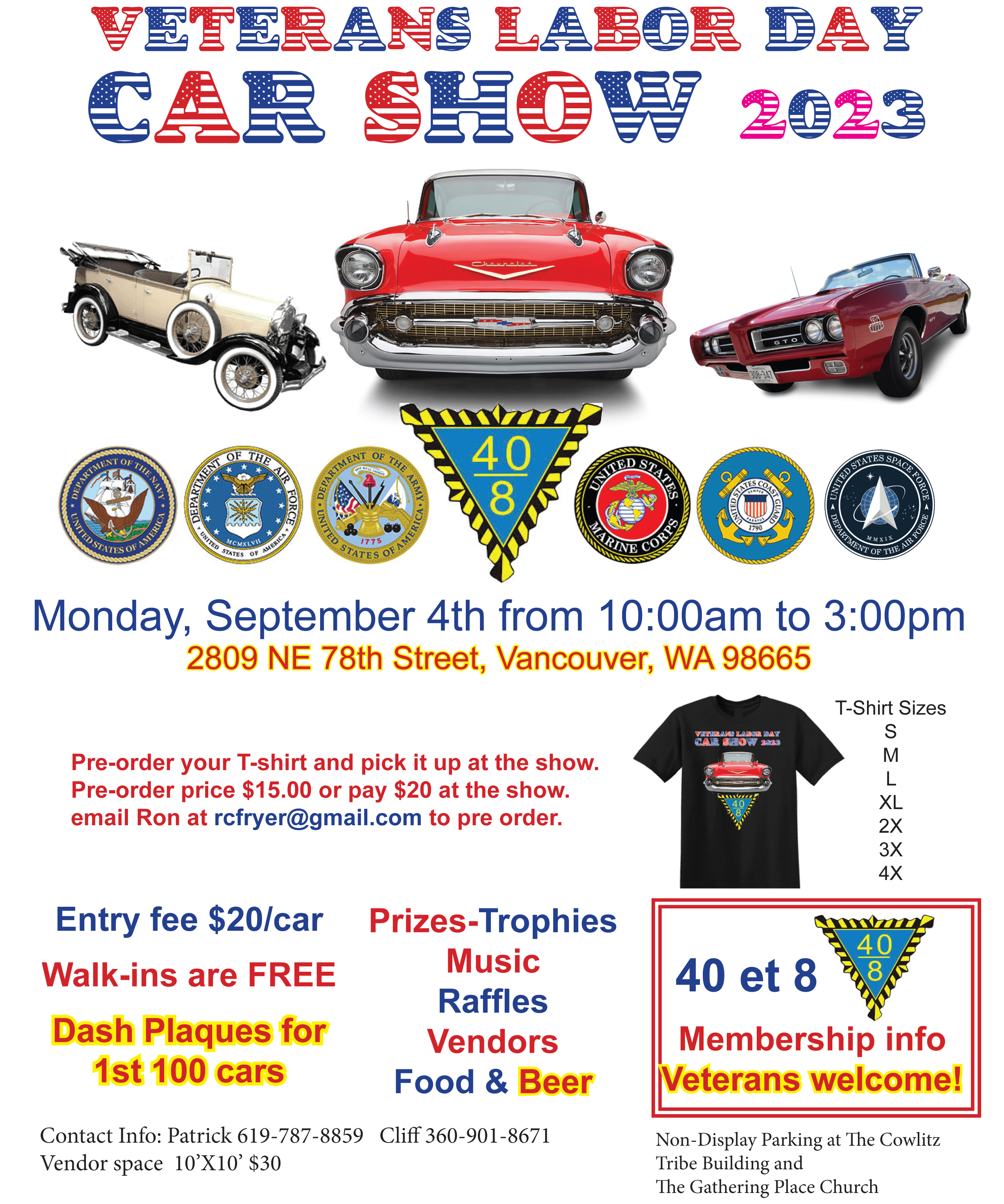 | Contact Info: Patrick 619-787-8859 Cliff 360-901-8671 Vendor space: 10'X10' $30 |